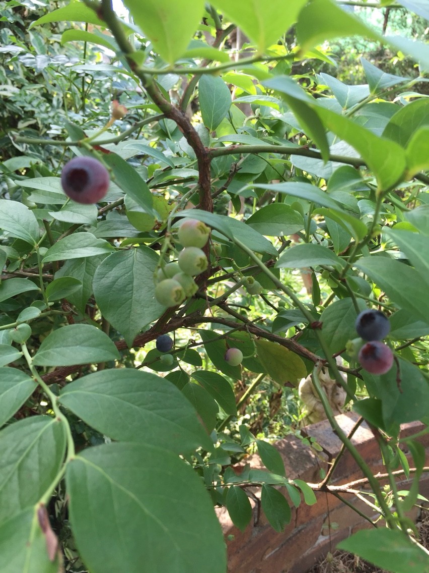 ブルーベリーが熟してきました。この1-2日でようやくいろづいてきました。