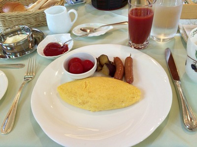 中禅寺金谷ホテルの朝食。基本的にはアメリカン・ブレックファーストですが、チェックイン時に和食の希望を伝えると差額600円ほどで和食御膳になります。日光といえば湯葉なので、写真を観たときに和食にしようと思いました。このほかにお味噌汁、お漬物、海苔があります。