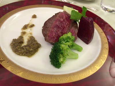 メインもチョイス。霧降高原のサーロインかミナミマグロの赤ワインソース。