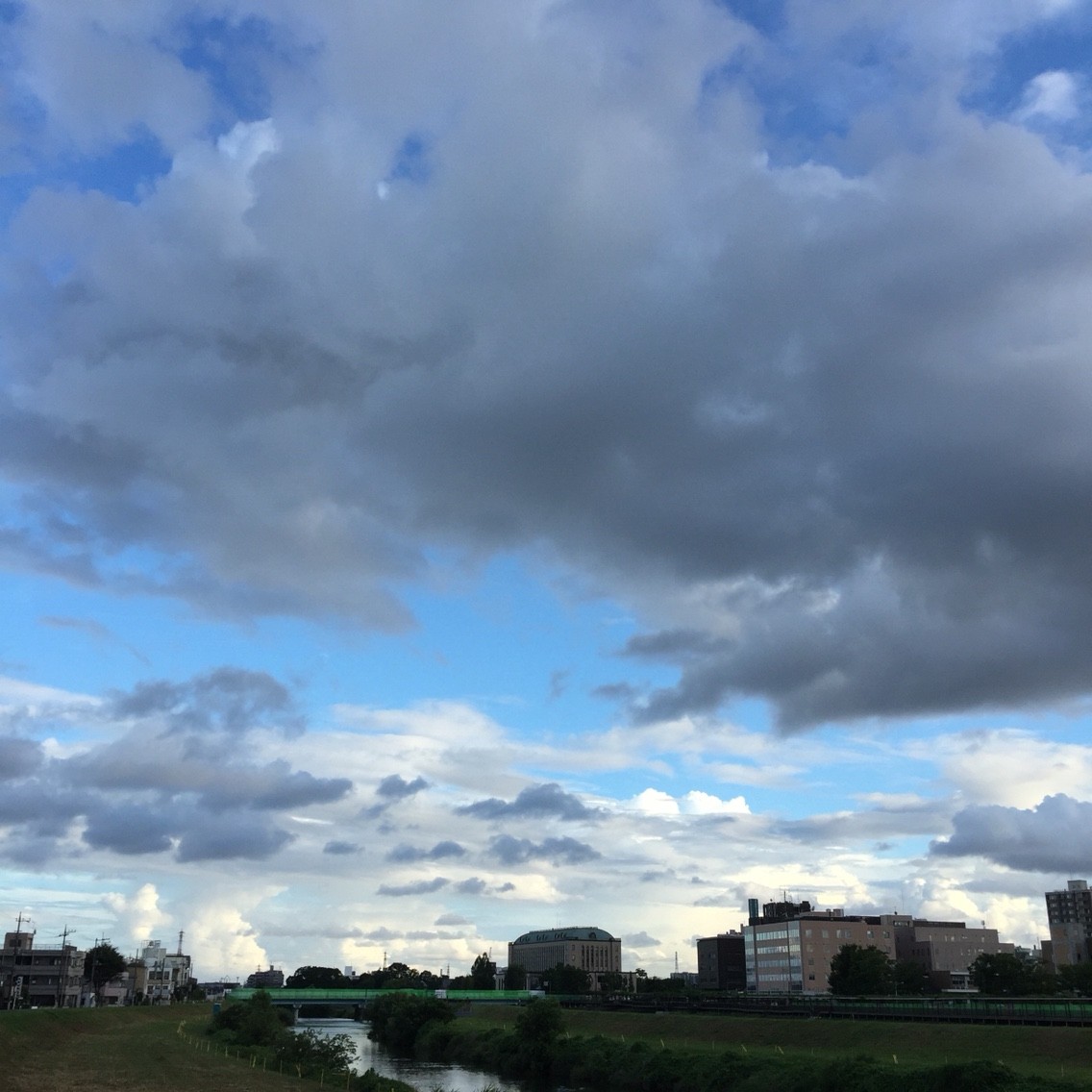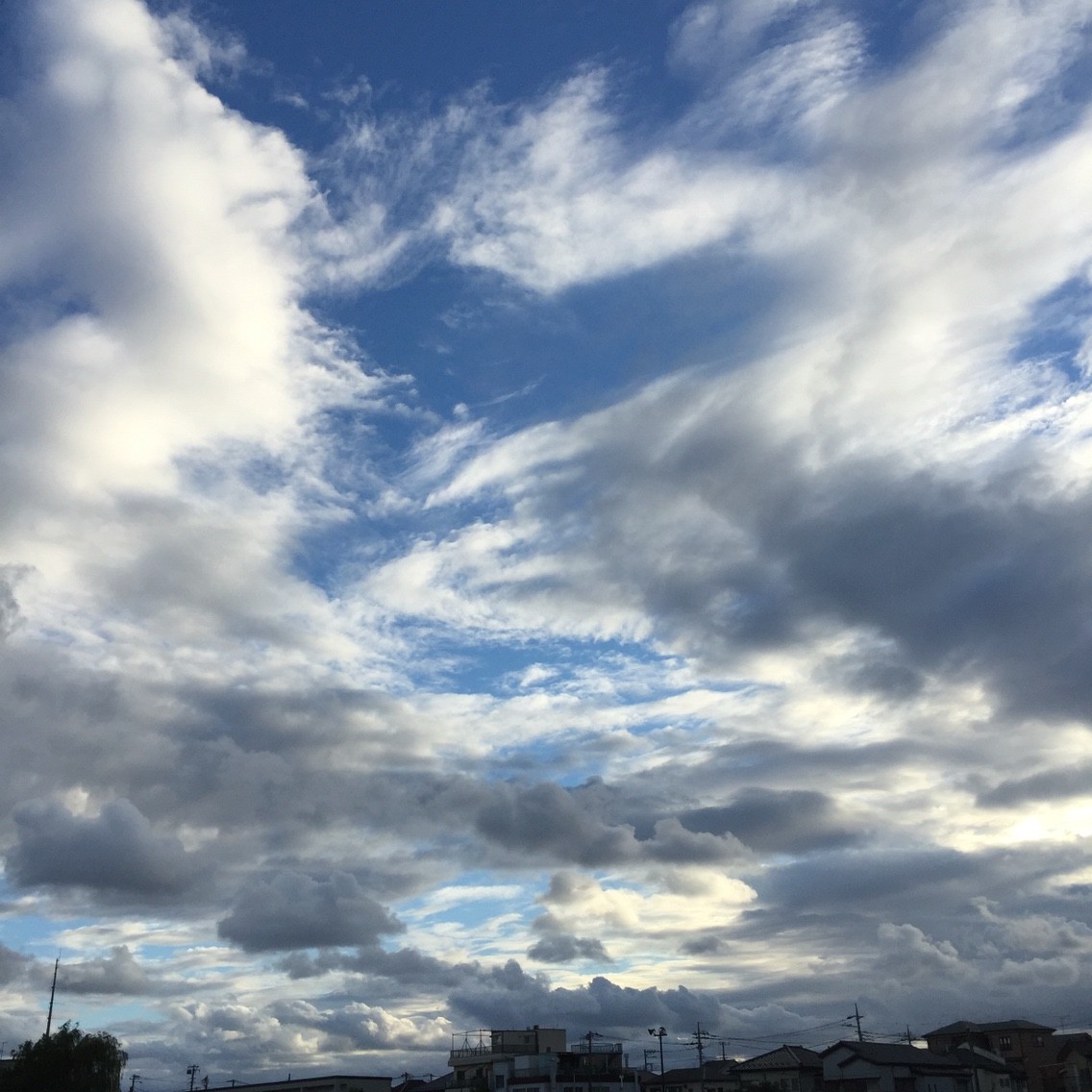 梅雨明けしました。昨日は天気雨が降ったりやんだり。こんな空と雲。大気の層が見えるようでした。