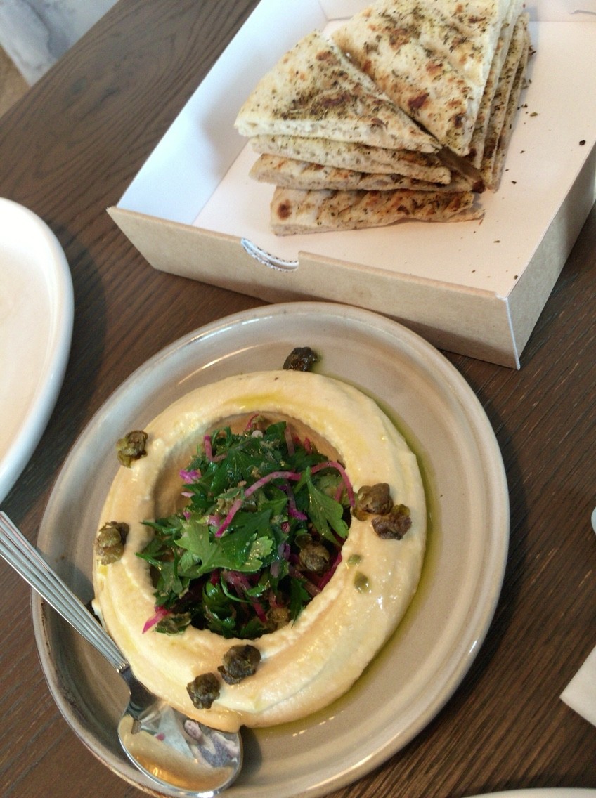 」ピタパンとヒヨコマメのペースト(フムス) ピタパンは追加したかったけれどもひと箱単位での追加で500円だったので、メインをたべるまで追加せず。少量から追加できるといいですね。