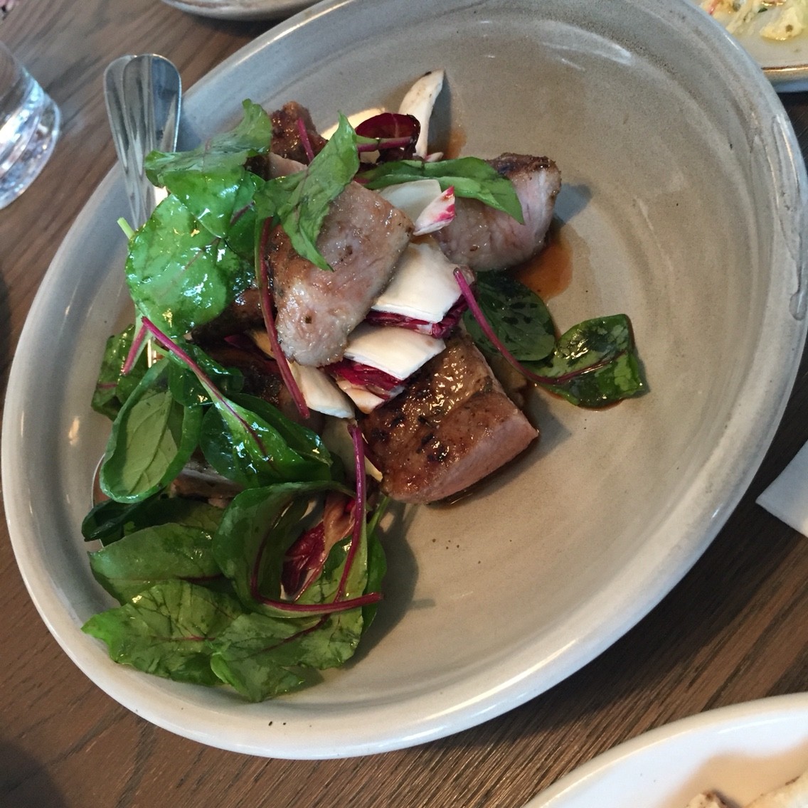 メインは今回はセレクトでポーク肩ロースのグリルにしました。下味がほんのりついているのがギリシャ風で美味しかったです。これで赤のワインのみたい。