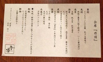 スカイレストラン料理長 中村さんの印がはいったお品書き
