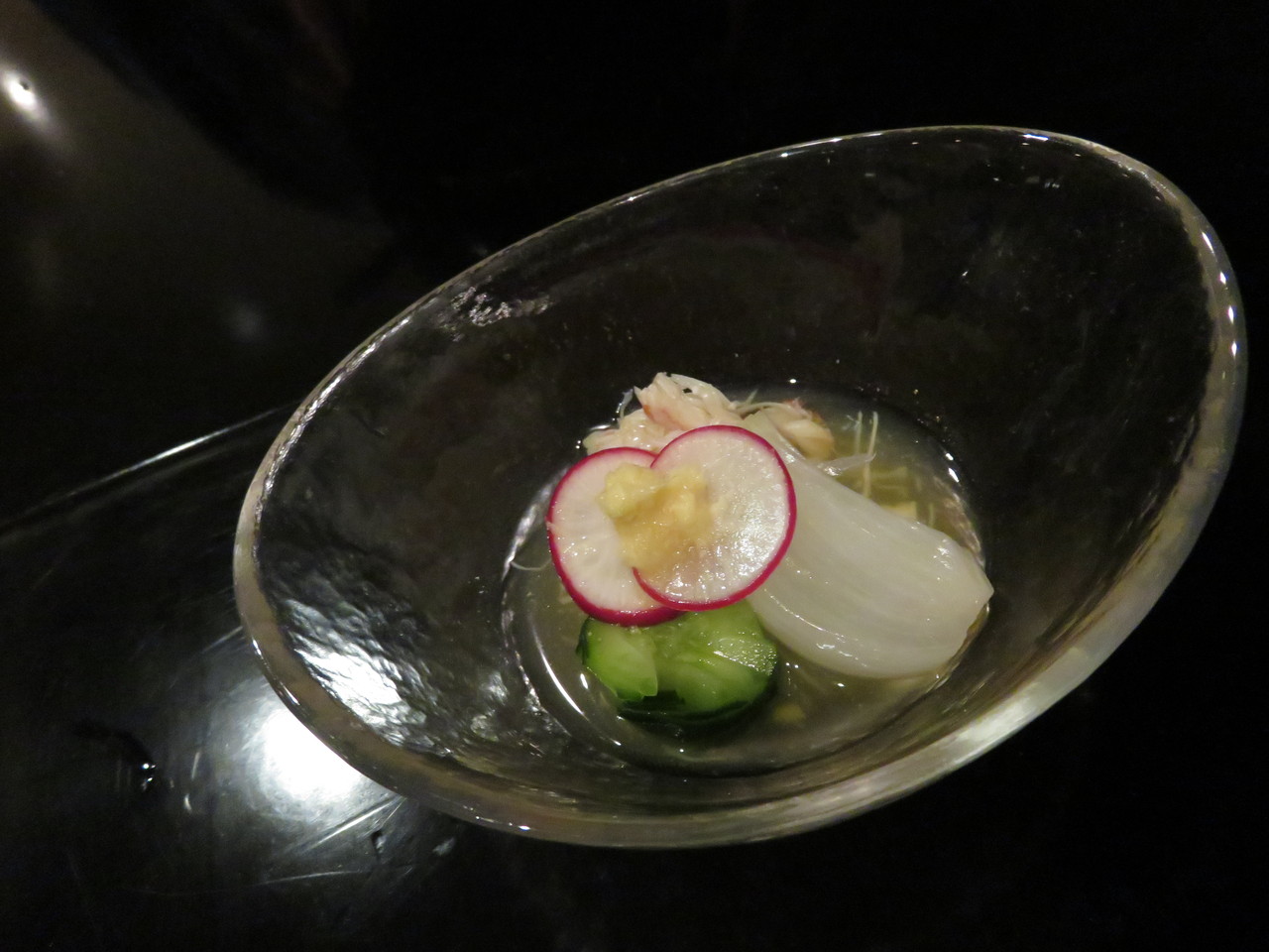 この毛ガニの酢の物はちょっと凡庸で、ピュアホワイトのすりながしを追加すればよかったかもしれません。