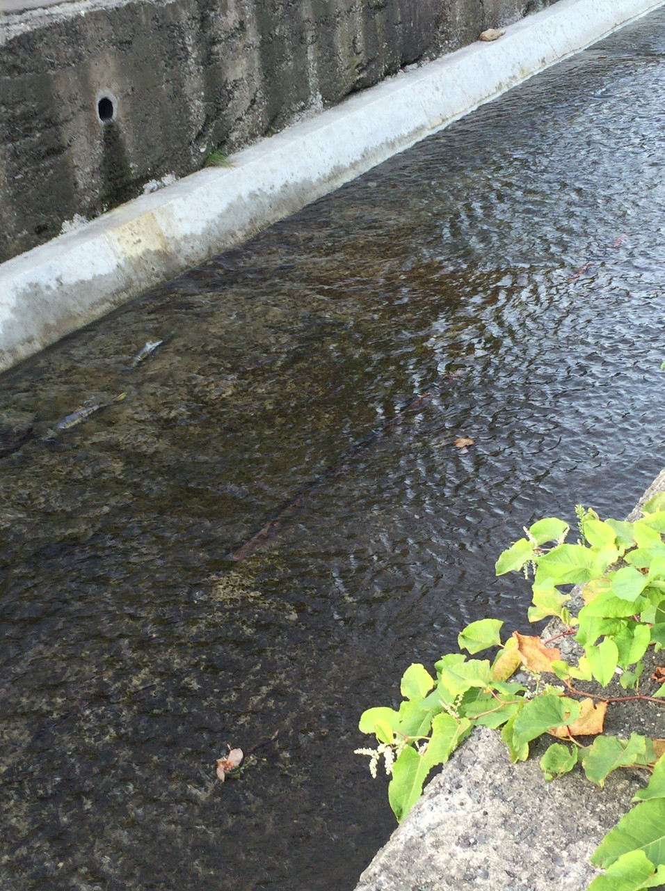 この工房があるあたり、運河の手前の川に鮭が川にかえってきていました。
