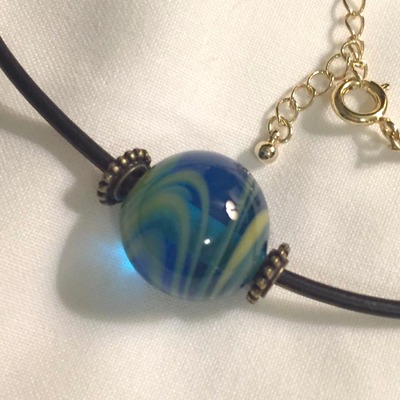 とんぼ玉作成は神戸で2回目やっております。これで3回目。今回はクリアブルーにイエローの細いガラスでマーブルをつくりました。