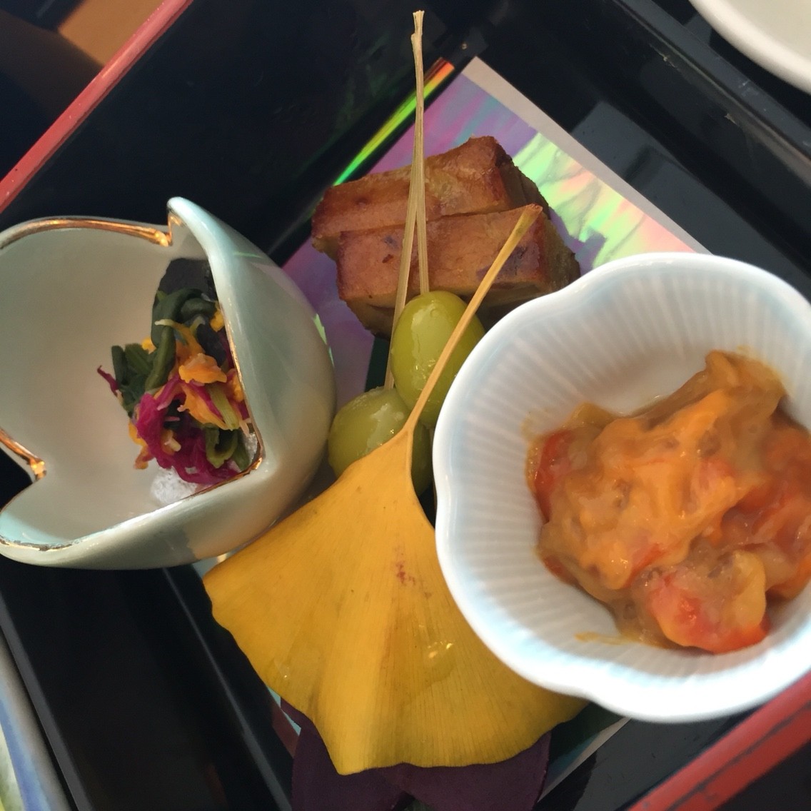 東京都らしく銀杏とぎんなんをあしらった先付。ほや、しめさば、菊花と季節を感じられます。