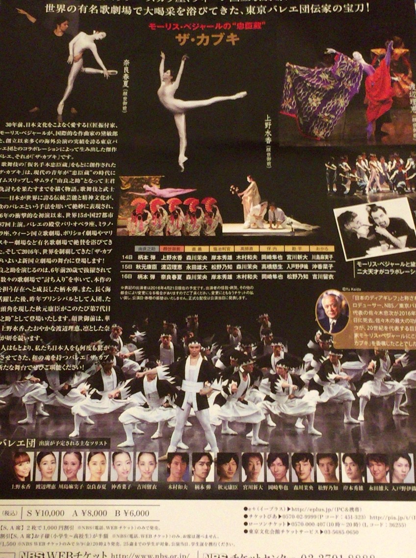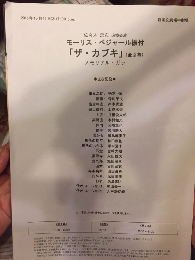 10月15日 東京バレエ <ザ・カブキ>公演行ってきました。今回で4回目、NHKホールでの抜粋上演を含めると5回目かと思います。