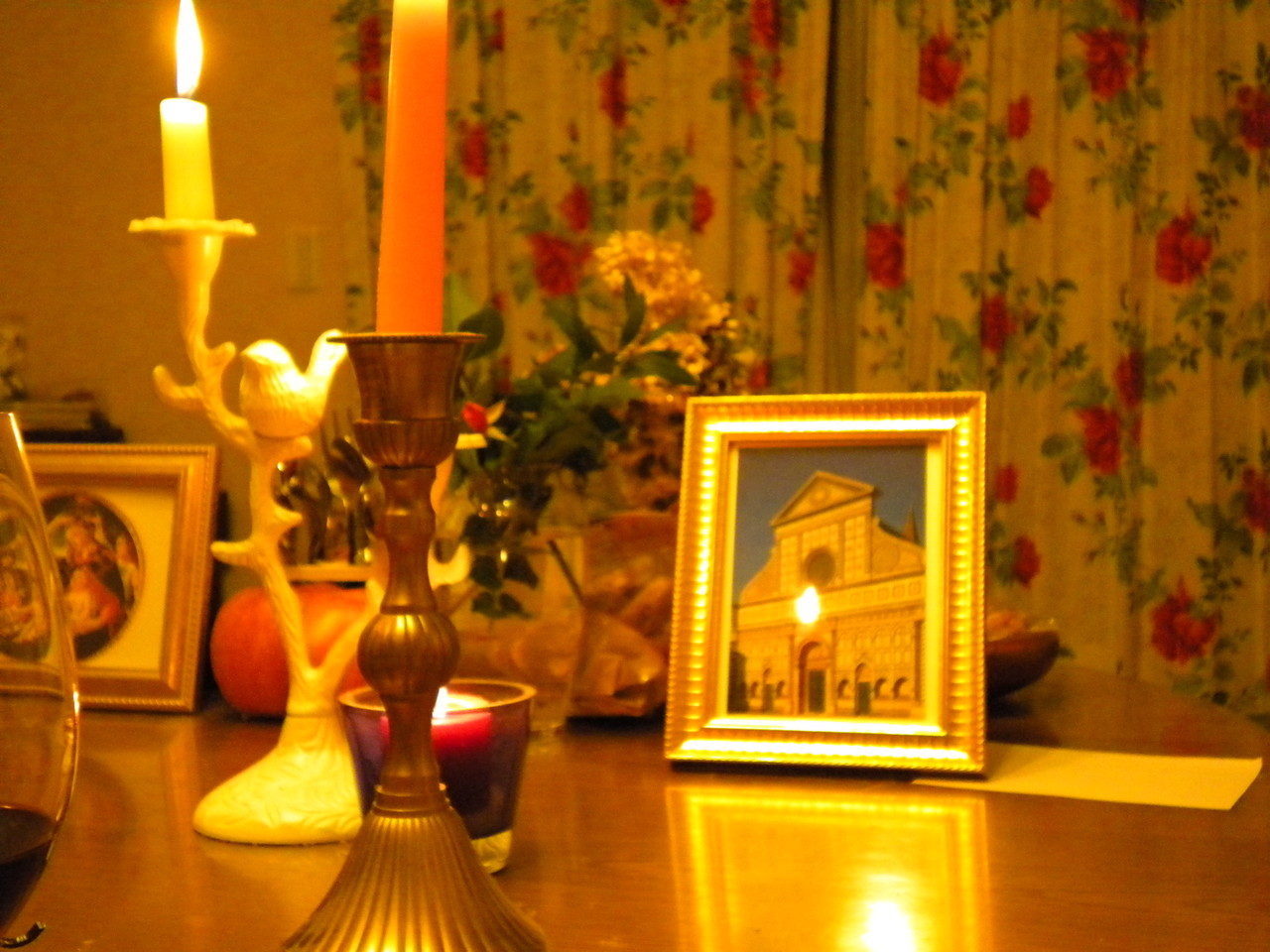 帰宅帰国した後、サンタ・マリア・ノヴェッラとボッティチェリのカードを卓上に飾りました。