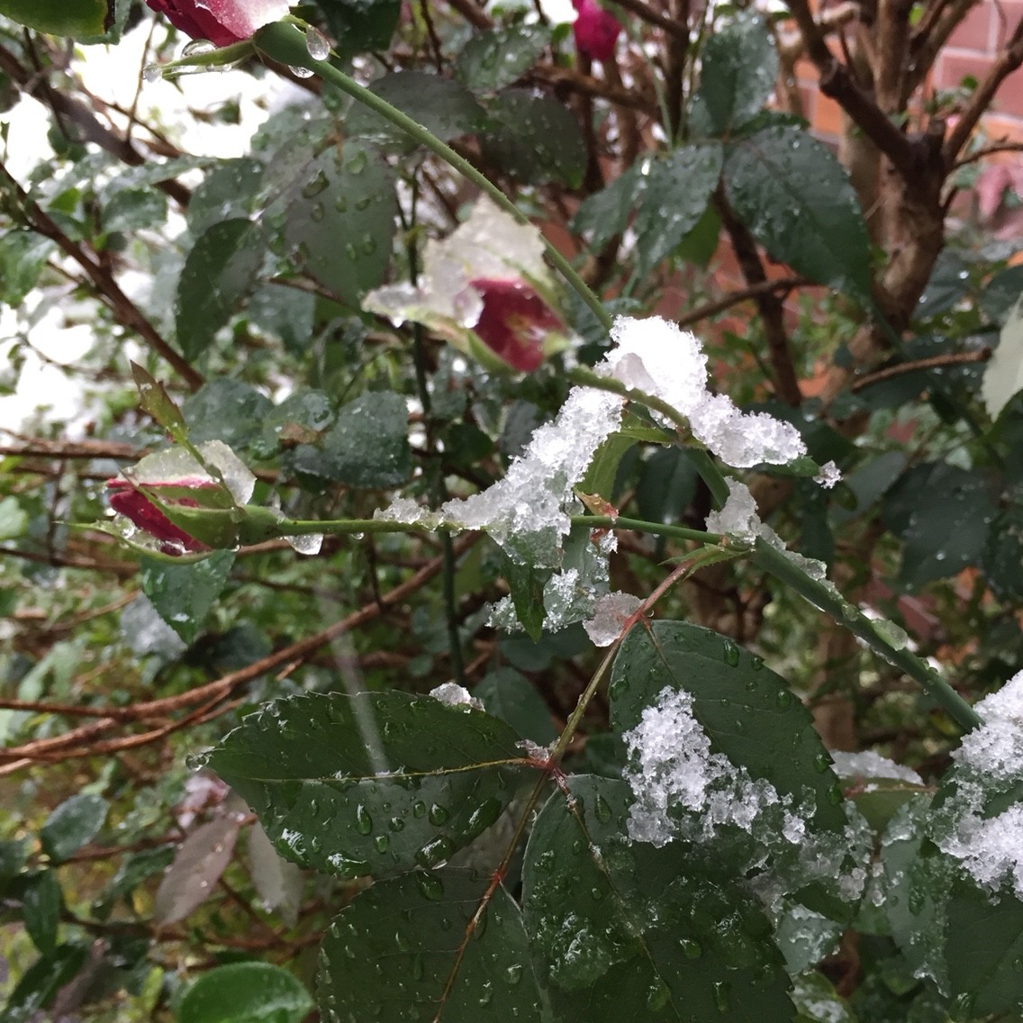 パット・オースチンにもまた最近のあたたかさで蕾がついてきていたのですが、この雪でちゃんと咲くかどうか。