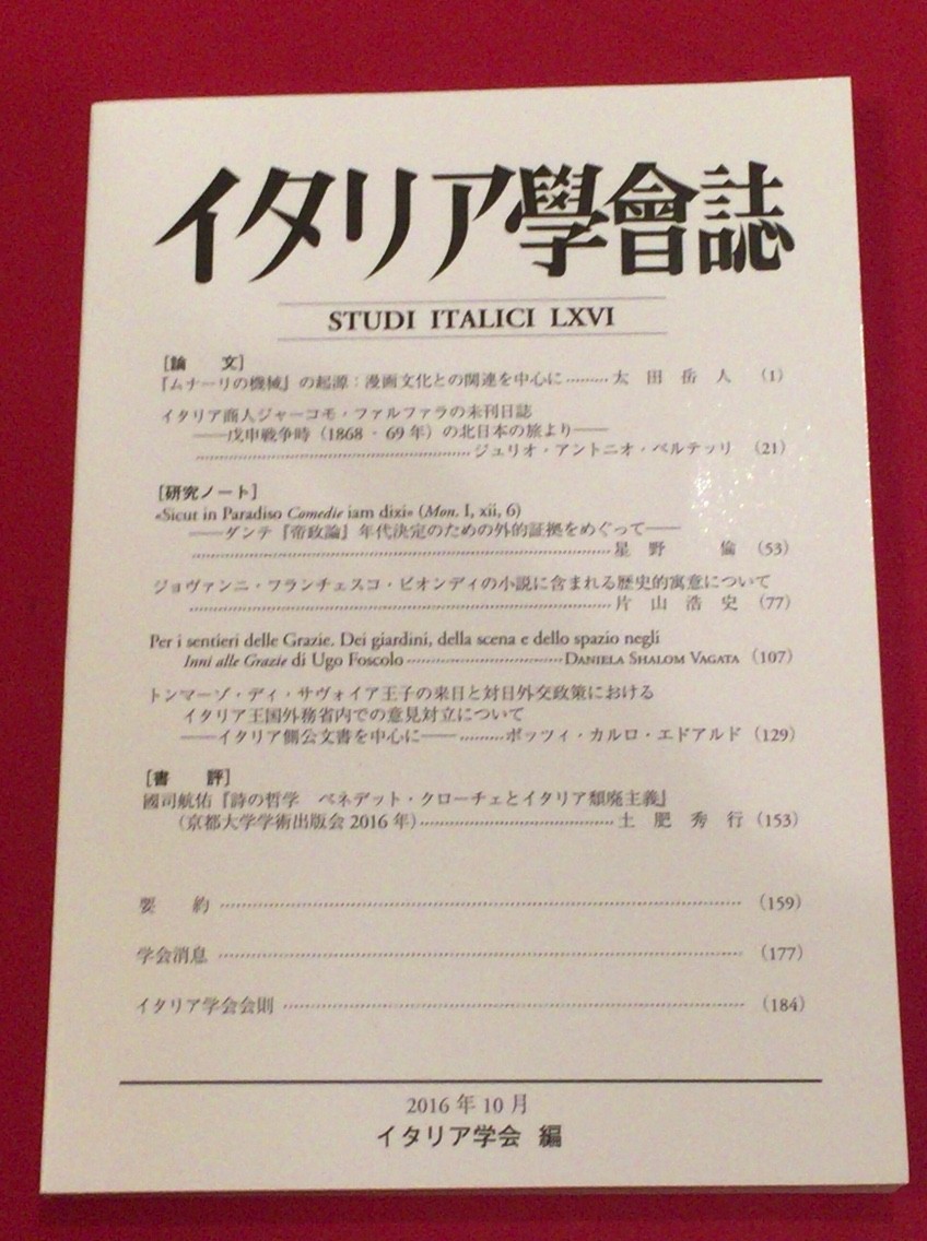 本年10月のイタリア学会誌。
