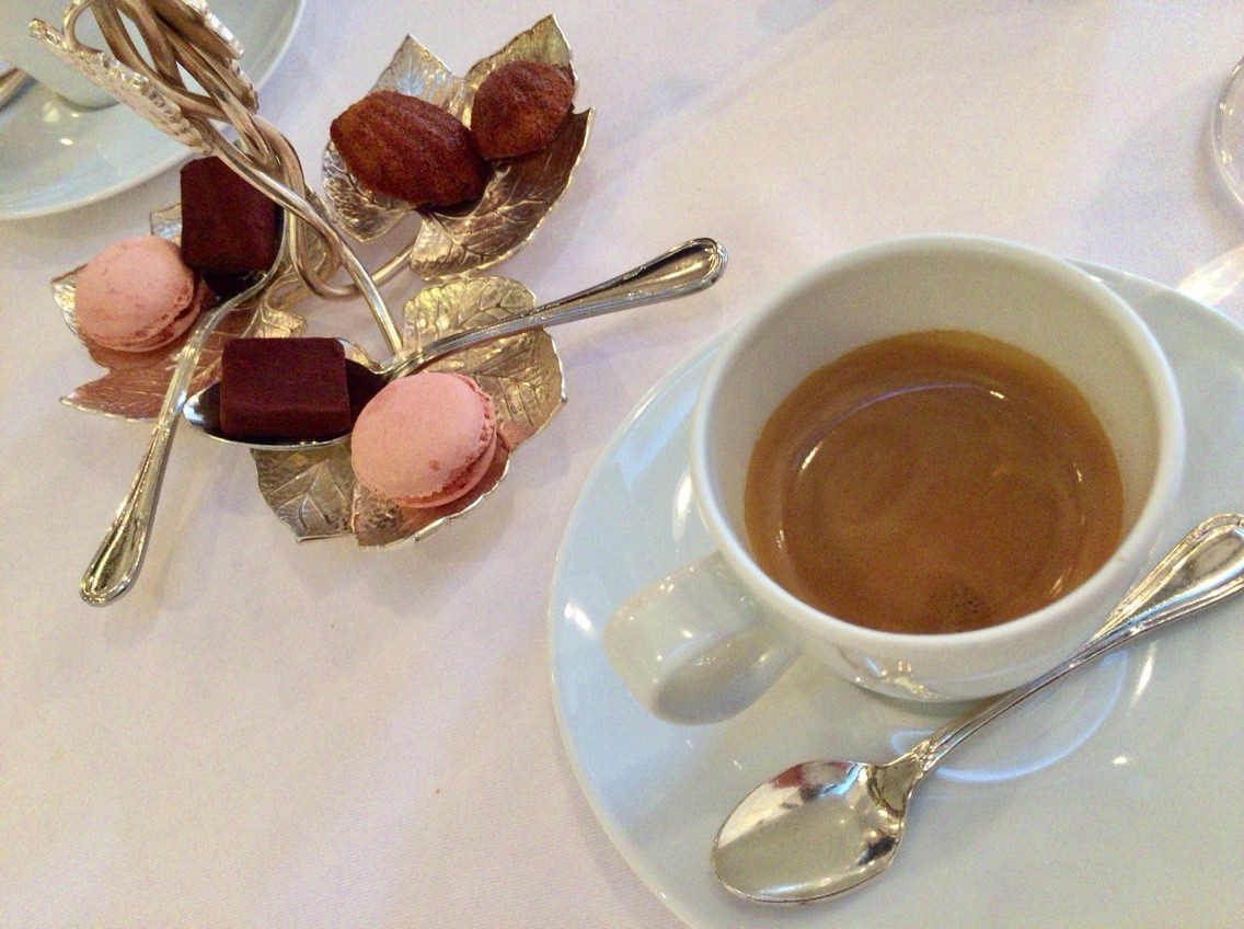 小菓子にマカロン、ガナッシュ、八角入りマドレーヌ。