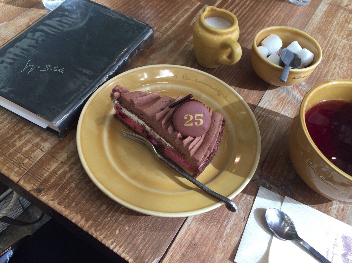 ラスコー展の前に、ア・ラ・カンパーニュでランチ+お茶+タルト(フランボワーズとチョコレートのタルト・限定)を.