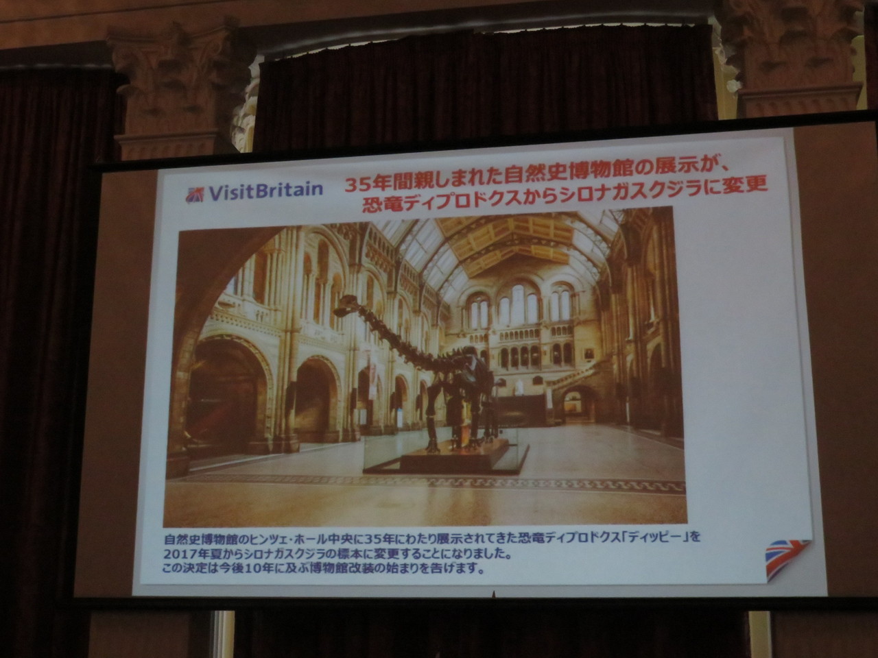 現地の英国では、恐竜ディプロドクスからシロナガスクジラに変更、35周年。こちらは渡英したらナショナル・ギャラリー、V&A などとともに行きたいです、記者発表のときも思いましたが、建築が魅力。