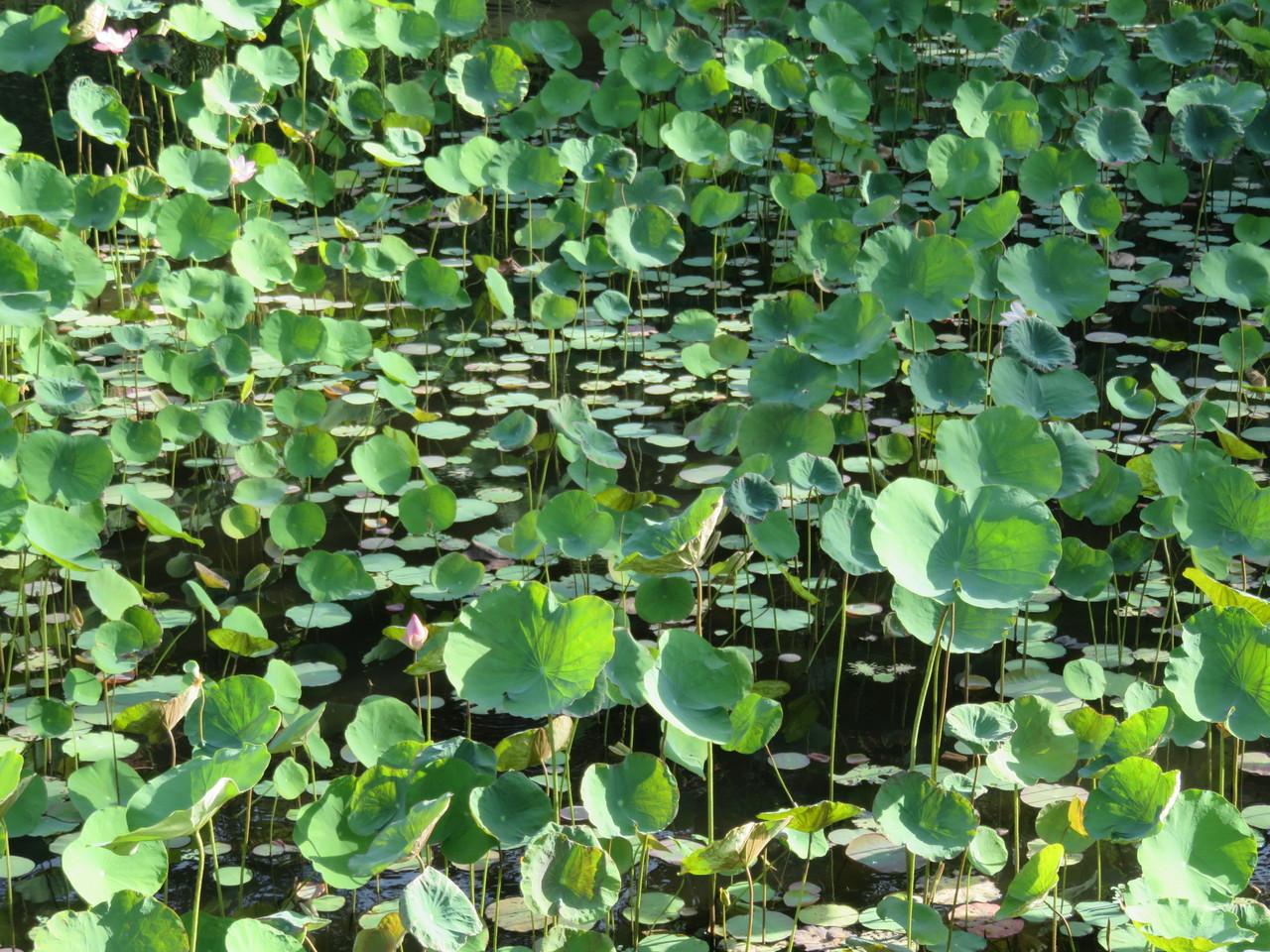 庭の蓮の花、早朝あるくとピンクのきれいな花が開いていて神秘的です。
