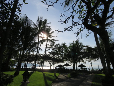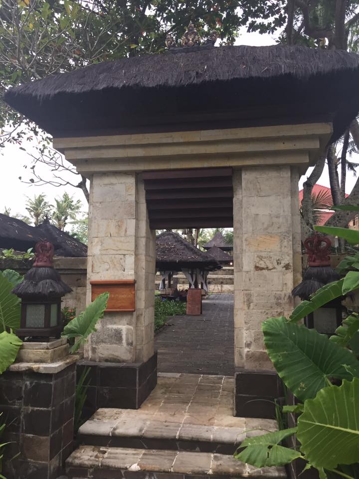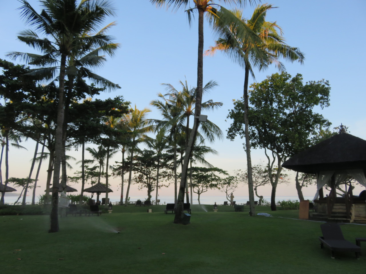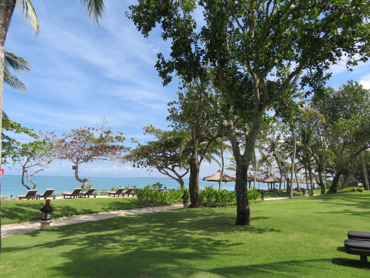 クラブ・インターコンチネンタル・バリ滞在記の続きです。2月は雨季とされますが滞在した数日間では雨は降らず穏やかな晴天でした。おそらく2月25日の朝。部屋のテラスからの外庭です。