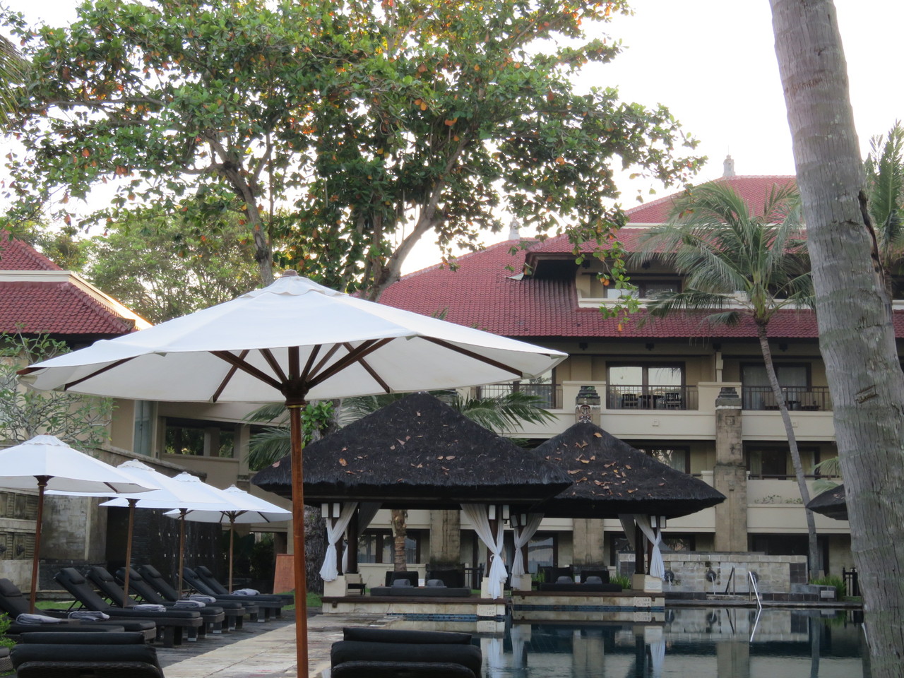 夜は22時までインドネシアンプールを利用きます。観光していて夜泳ぎたくなってもOKですね、といいますか夜のバリ島のプールは星が綺麗なのでおすすめです。日焼けを避けるためにも(いつも思わず日焼けしすぎてしまう)朝から昼頃までをプールとビーチで、昼間は屋内(美術館や寺院など、スパや食事)で過ごし夕方からまたプールへいくというのも一日はあると良いと思っています。インターコンチネンタルバリはサンセット時が素晴らしいのでできれば17時にはホテルに戻ってゆっくり過ごすのがおすすめです。