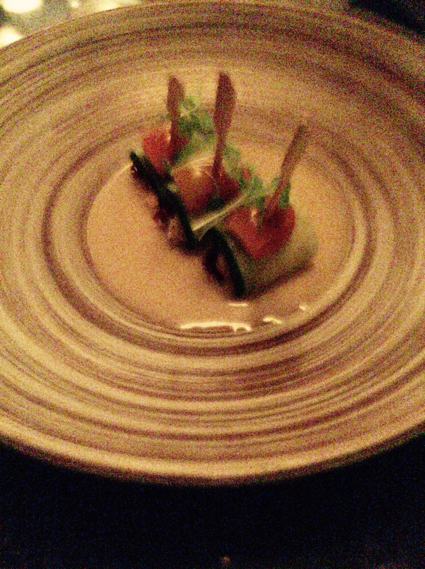 ジンバランはシーフードが新鮮ですから、巻寿司と前菜をたべてみようかなと思っていたのです。