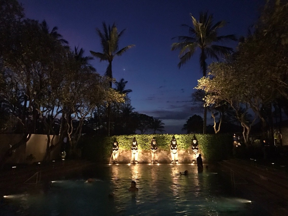 写真は夜のインドネシアン・プール(インターコンチネンタル・バリ)よく視ると、金星がうっすら見えますね!