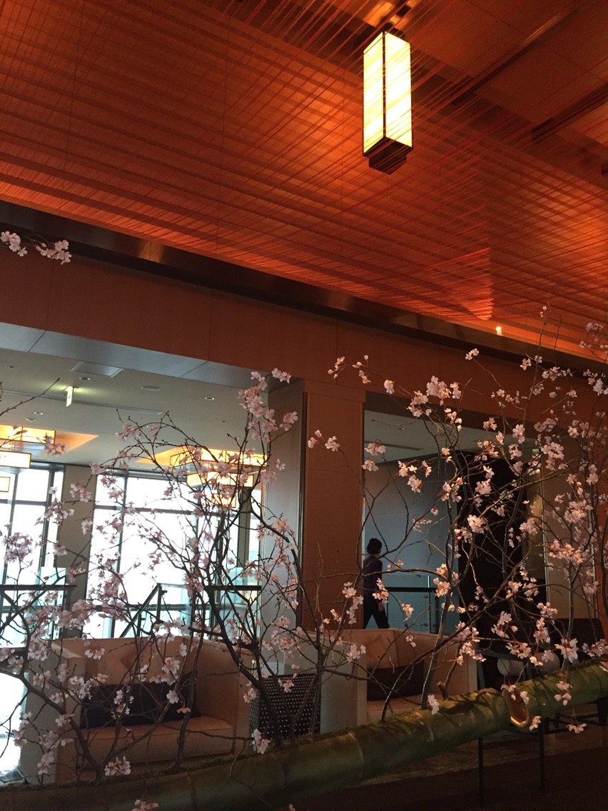 友人のかおりさんとランチに行って来ました。ロビーのお花も桜がさまざまにいけられています。37階は桜と蘭で、これはそのうち自分でも活けてみたい。