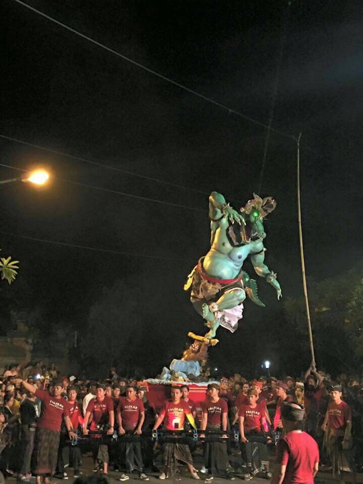 「オゴオゴ」と呼ばれる悪魔の化身とされる大きな人形を引き町中を練り歩き、町を清め、翌日のニュピの日に備える儀式。オゴオゴの通過するエリア、コースは交通規制され、周辺道路は渋滞や混雑も予想される。この日、寺院を含む観光スポットが翌日の準備のために閉鎖される場合もあるので、注意が必要。