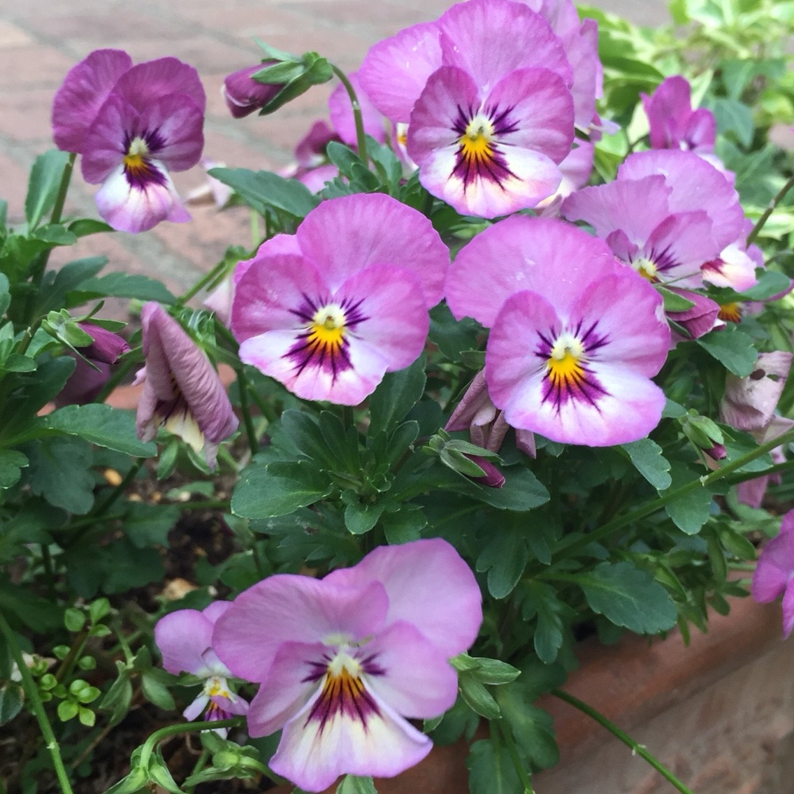 ヴィオラ。そろそろシーズン終わりますが、次のコンテナや寄せ植えは何を組み合わせよう...。
