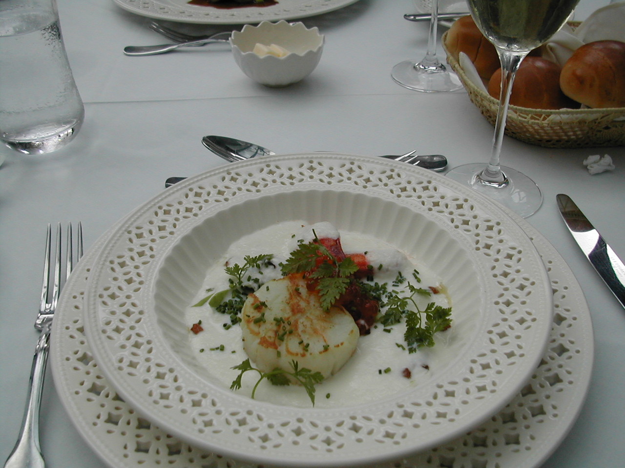 イギリスからきたシェフが一皿一皿つくる料理はコースでいただくととても美味しく盛り付けも美しく、ガーデンエントランス外の入り口の温室風の場所にありましたので、一日はガーデンへ、二日目はランチだけといった具合にも使えました。なつかしい。おそらく2003年とか2004年とかではないでしょうか。