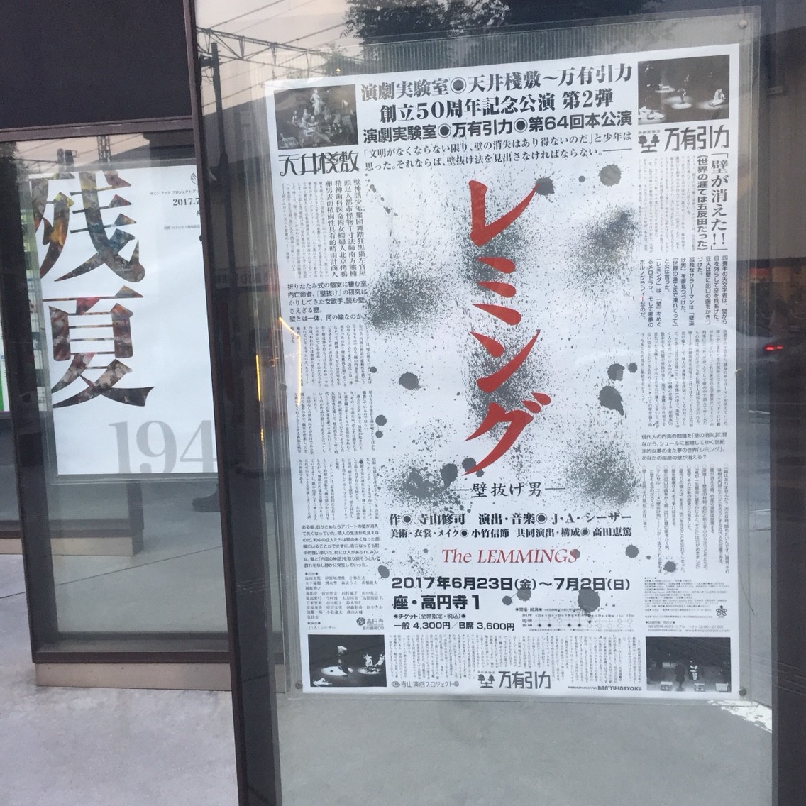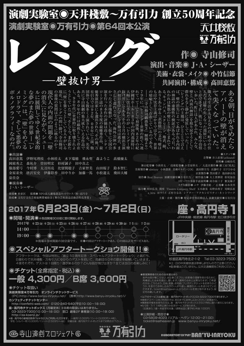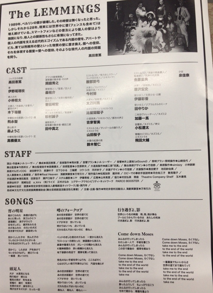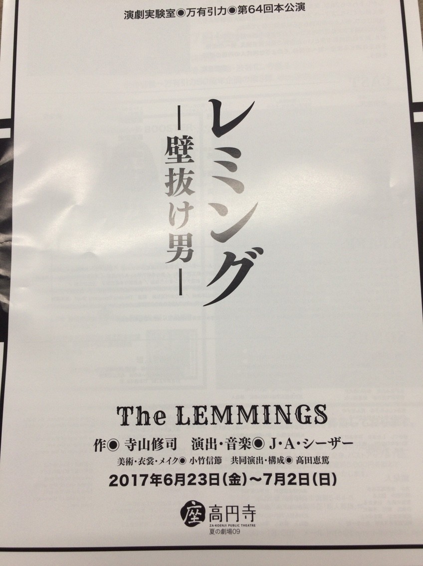 7月24日土曜日 夜公演へ。23日が初日です。レミング、万有引力版は、スペースゼロでの上演を見ています。おそらく高校生。パルテノン多摩での公演にも行っていたくらい当日の演目はみています。