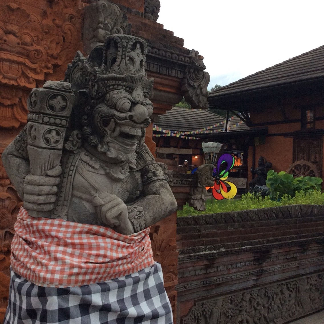 紫陽花がみえるとやはり日本!と言う感じですが、石像などは直輸入なので....バリ島のなつかしさがあります。