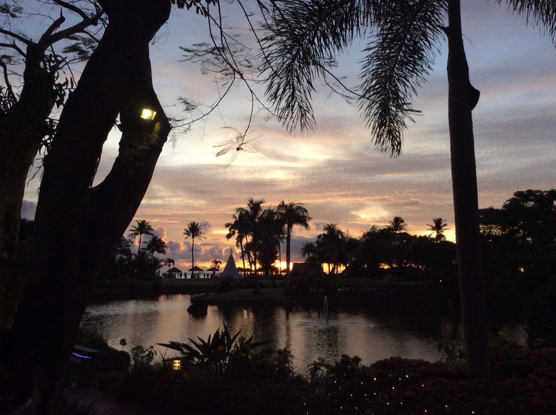 写真はハイアットのラグーン、ガーデンからのサンセット