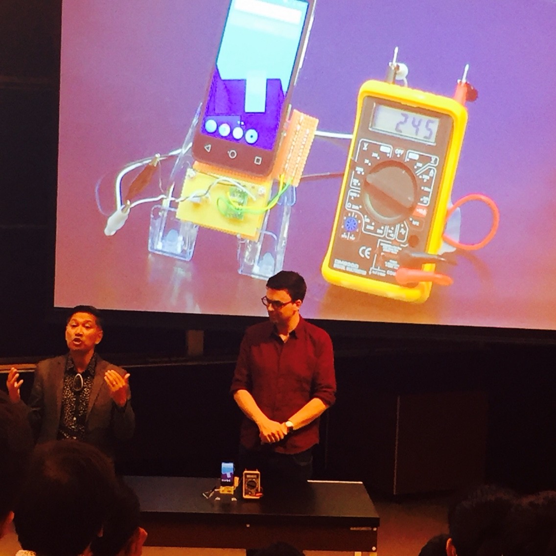 電池の原理についても会場で紹介されました。またロンドンではレモン電池の最大数にチャレンジした実験、こちらも会場で紹介されました。