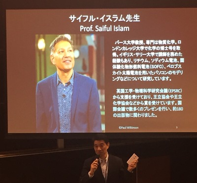 今年は、サイフル・イスラム(Saiful Islam)先生が講師。バース大学教授、専門は物質化学。