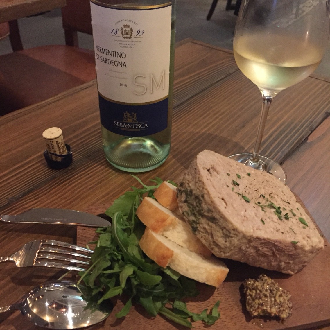 チキンのパテとサルディニア島のワイン。