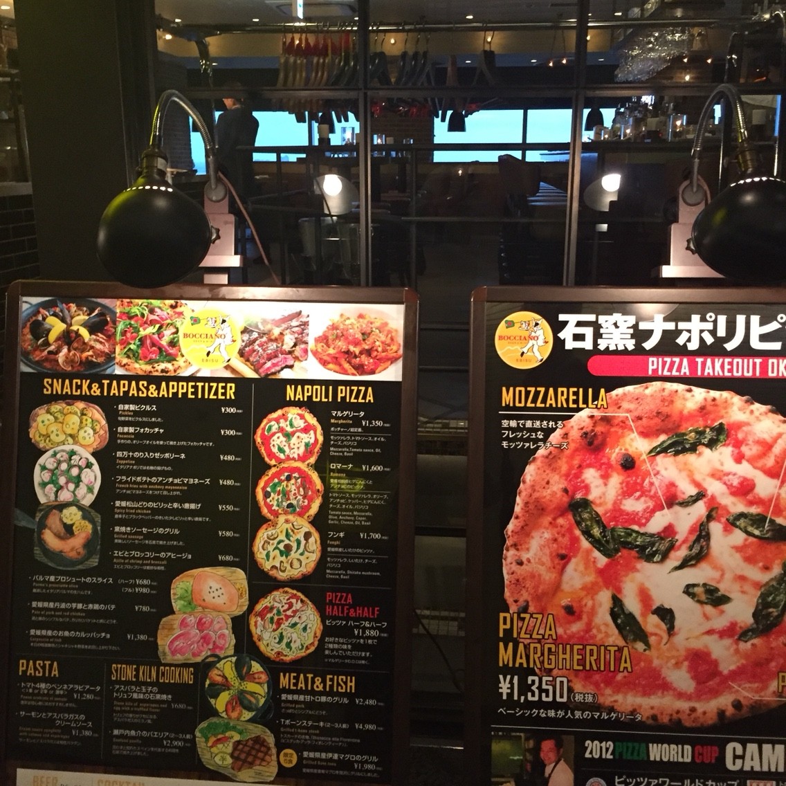 ガーデンプレイスのエレベーターで瀬戸内の食材と使った石窯ナポリピッツアのお店へ。