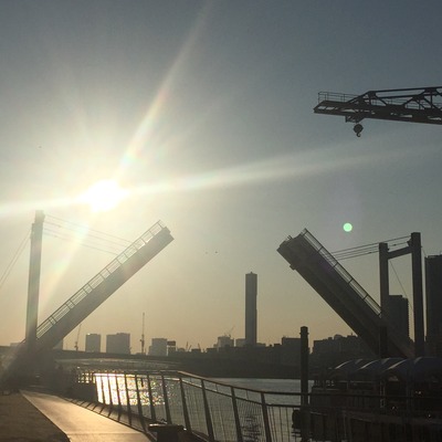 一日目の終演後も雨が上がりましたが、翌日は晴れ。木場の橋を渡るときに都心方面に富士山のシルエットがくっきり。