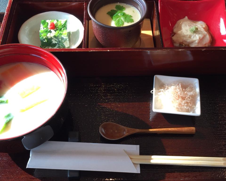 小松菜のゼリー寄せは家でもつくってみたいです。くみあげ湯葉に、京風の丸餅と白みそのお雑煮があたたまりました。