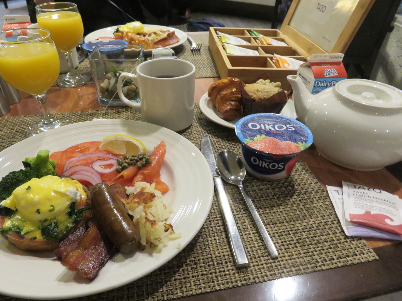 スモークサーモンとエッグベネディクトが美味しかったです。ヨーグルトがオイコス(OIKOS)ギリシアヨーグルトなのも嬉しい、日本のオイコスもこのくらい大きいパッケージでいいんですけど...