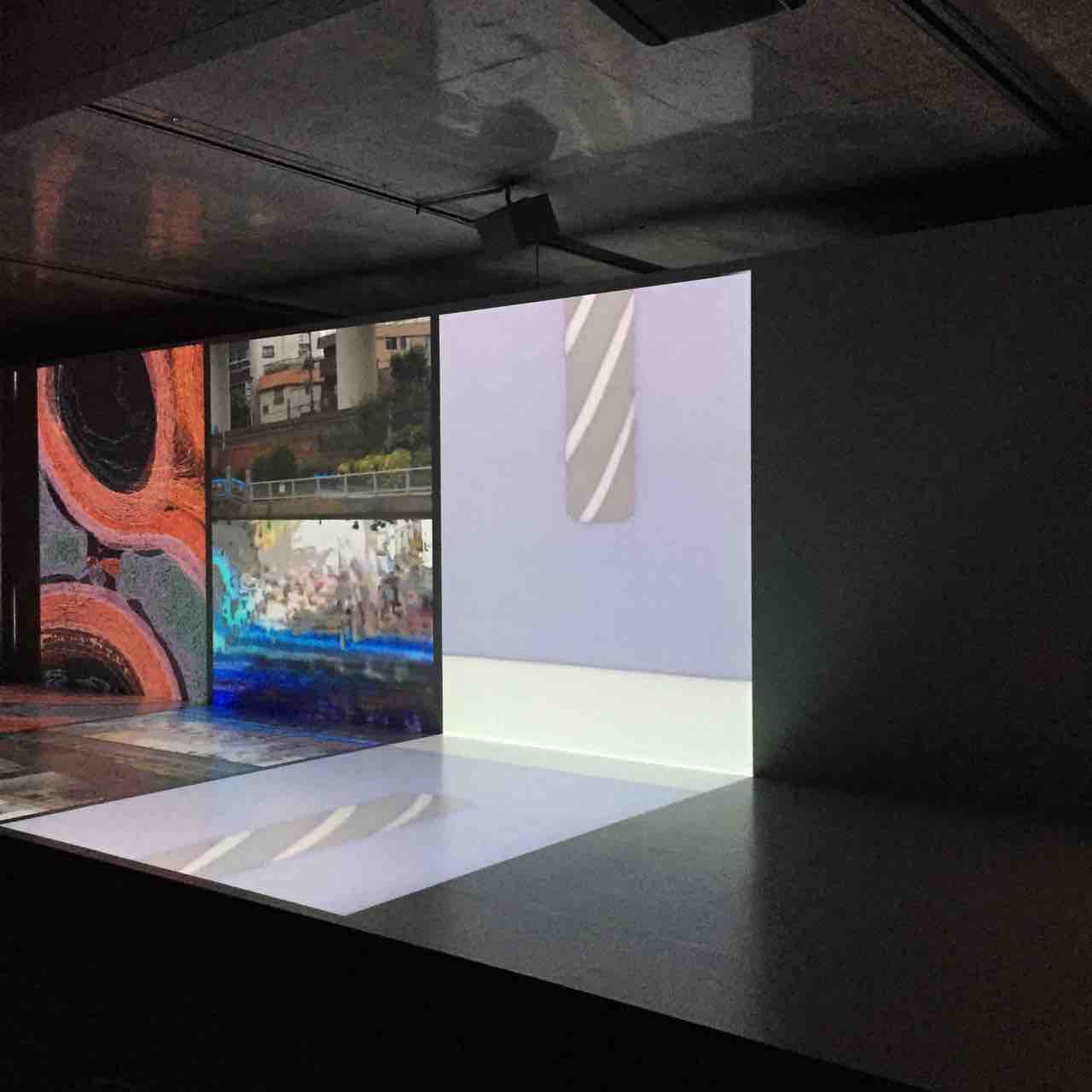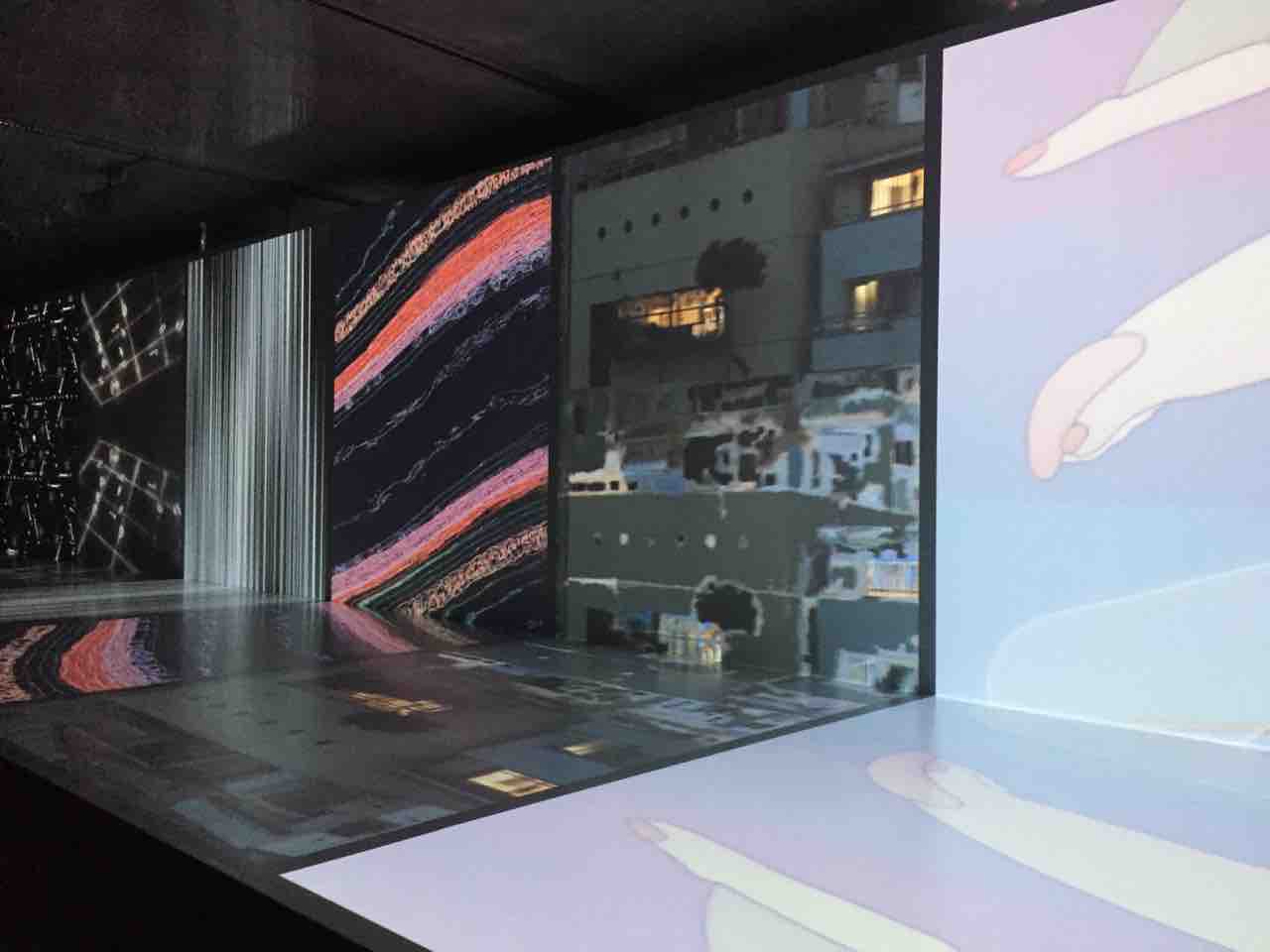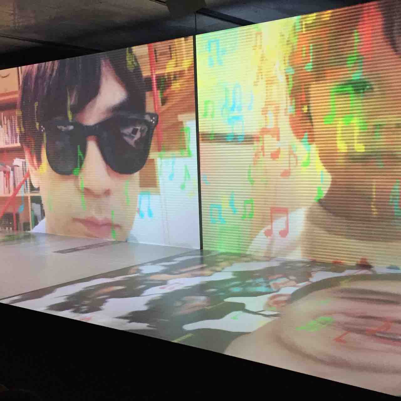 実はすでに2回行きまして、1度目に行って数日後にはまた音楽と映像に満ちたギャラリーに行きたくなってしまい。Mellow Waves のLIVEに行っていたりPVを見たりしていた1年なので(2017年;恵比寿、札幌、東京ドーム(with BECK)、新木場2day)2度展示空間に身をおいていて、大西景太(cocktailparty)、折笠良(Endgame Study)、梅田宏明(in fibrils 線維状にある)が特に印象に残りました。二枚のフィルム(レイヤー)を重ねて動かす ユーフテス(Layers Act)も個別ブースで映像とレイヤーを動かす効果を自分で試すことができます。