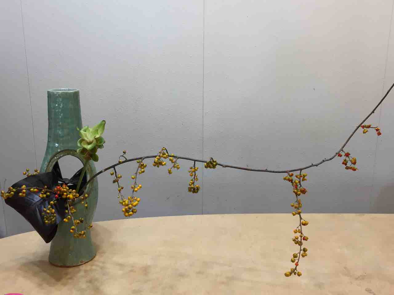 枝の止め方は応用をつかいつつ、先生にアドバイス頂きまして、この方法はもうすこし練習なり経験をつまないと、と次回以降のお稽古の課題です。