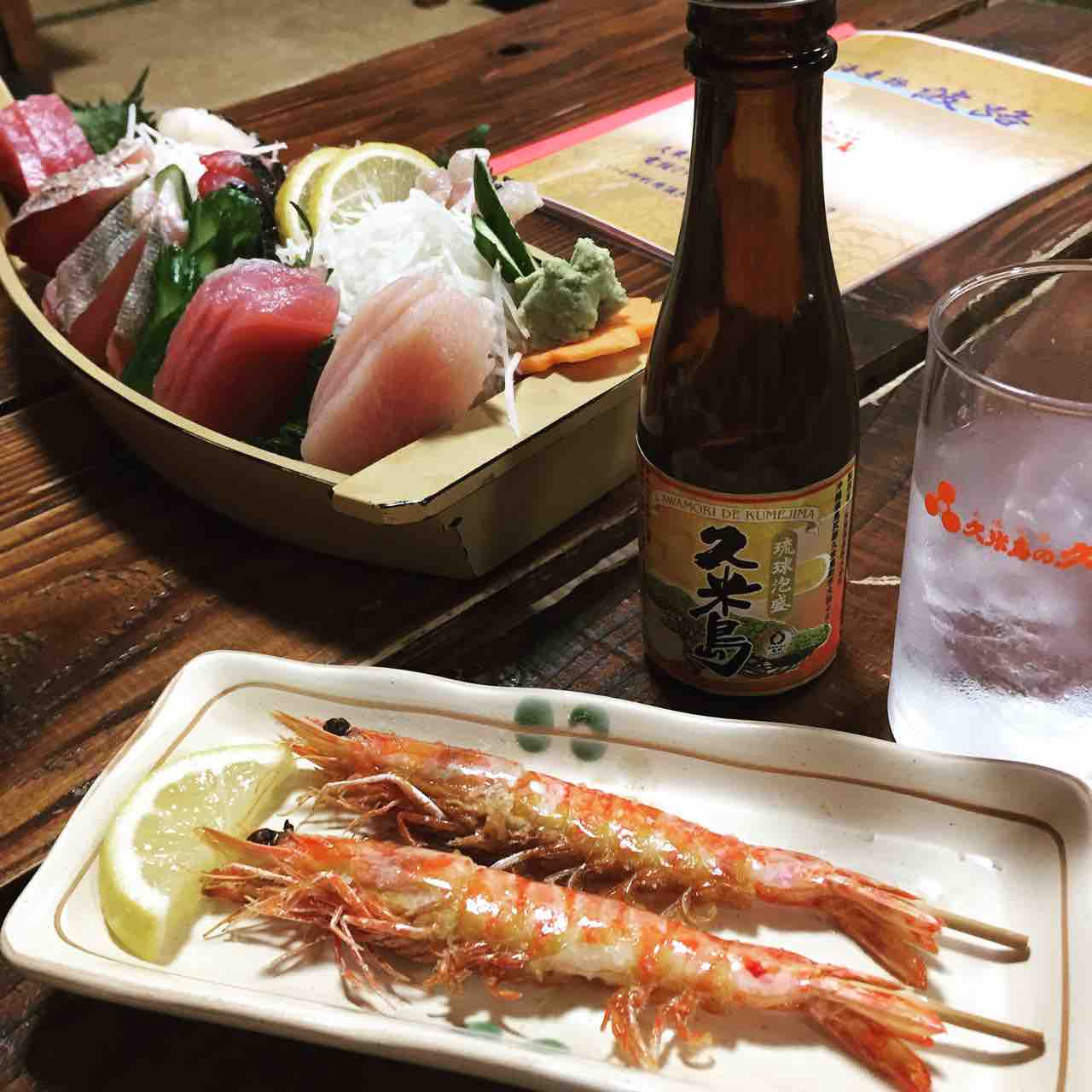 そして、夕食を食べた...のですが、今回の目的でもある車海老、近海魚のお刺身やお料理をもとめて、識名堂 ホテル近くのお店に行きました