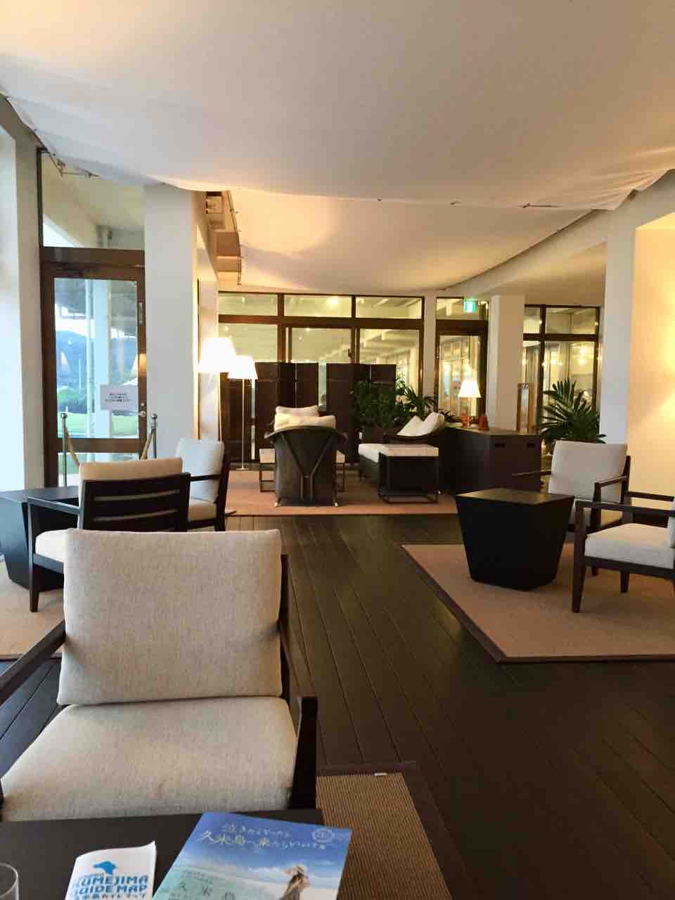 イーフビーチが見えるホテルロビーラウンジ。