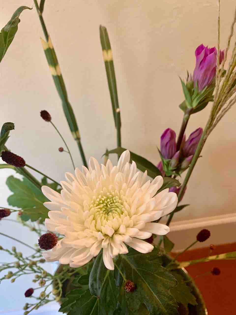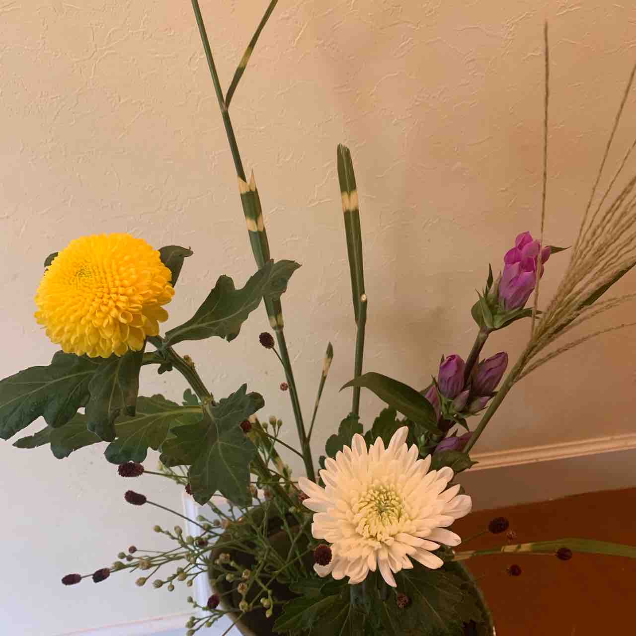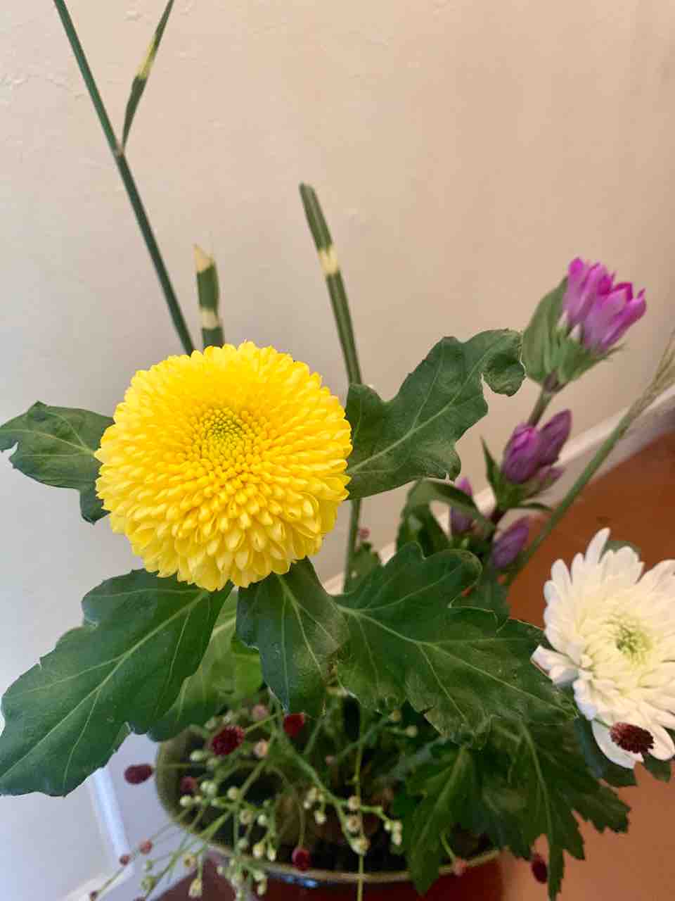 自宅で練習するための自由花、菊の節句にあやかっていけました。