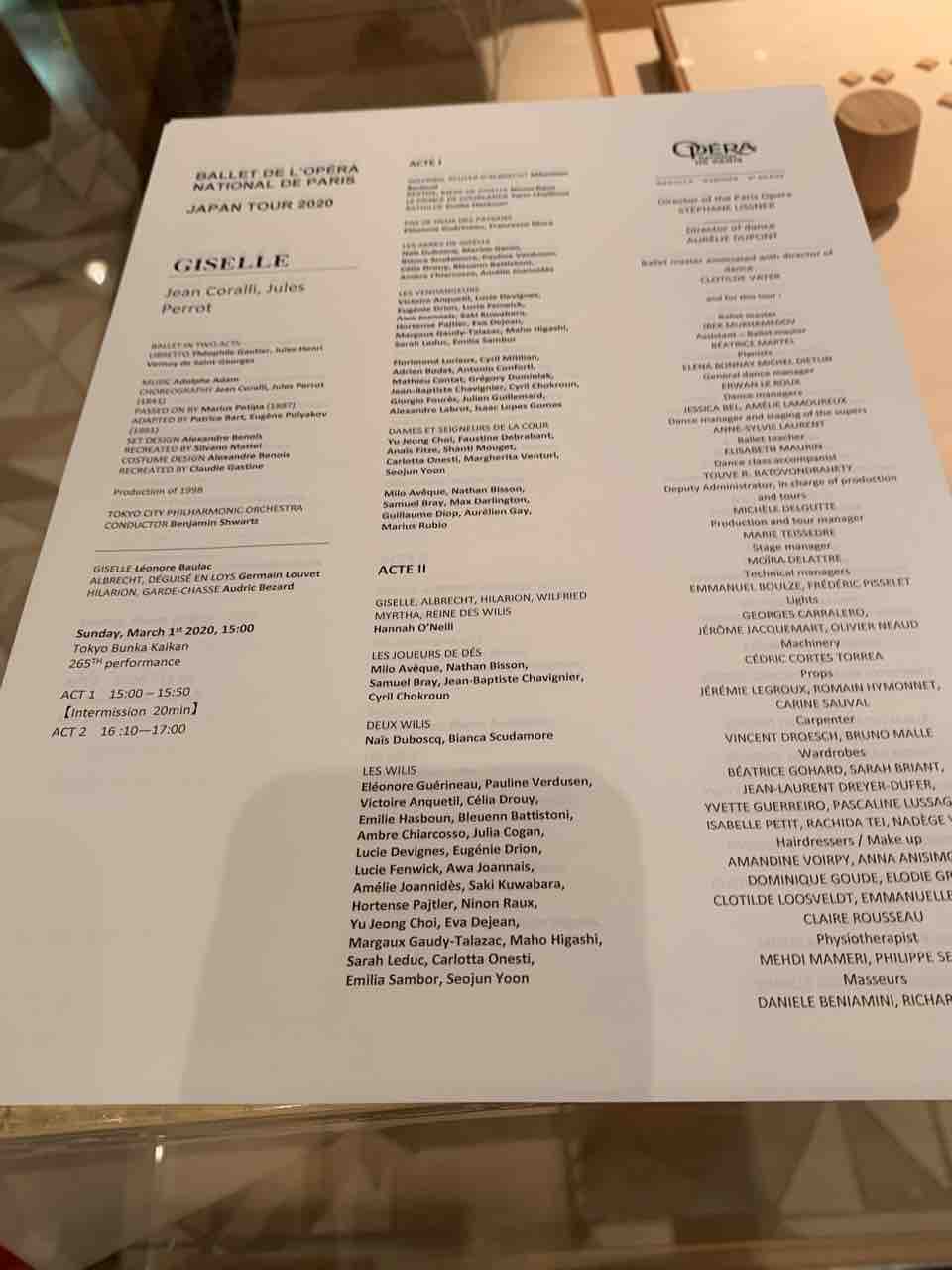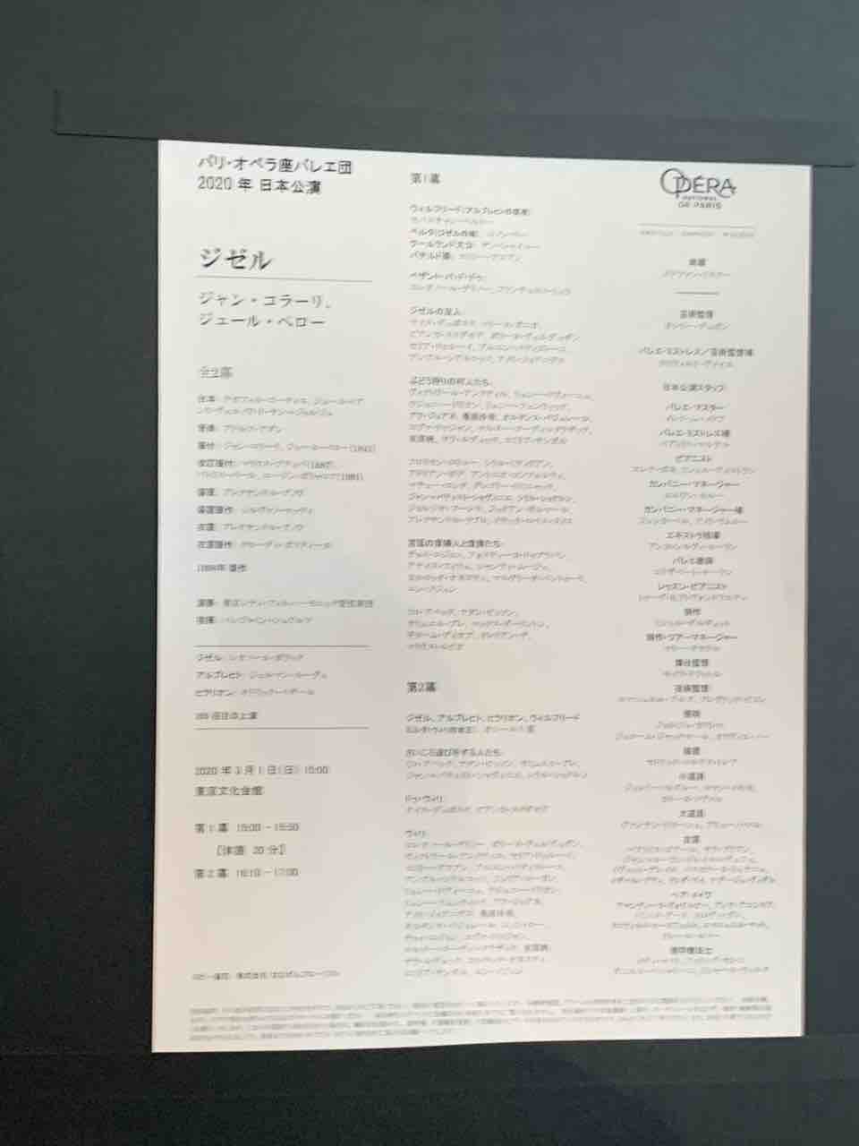 パリオペラ座バレエ、3年ぶりの来日公演3月1日マチネ公演へ行って来ました。今回の演目は<ジゼル>と<オネーギン>です。東京文化会館とNBSは最大限の注意喚起と対策および観覧を中止した観客への対応も含めてもっとも最善の形をとったと思われます。待ちに待った公演であり素晴らしい舞台を共有できたことが素晴らしいことです。