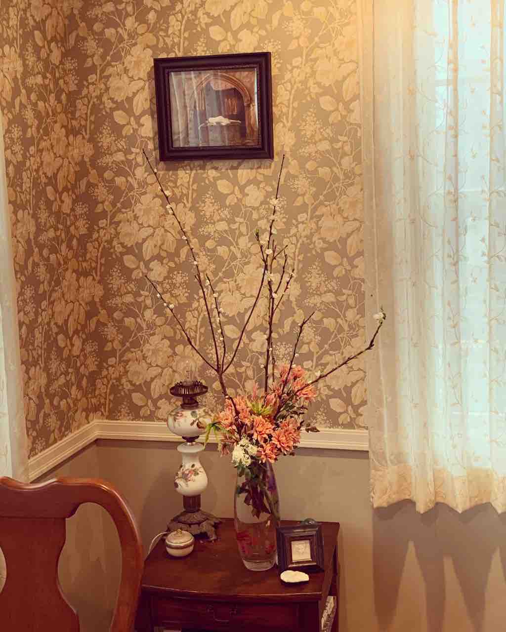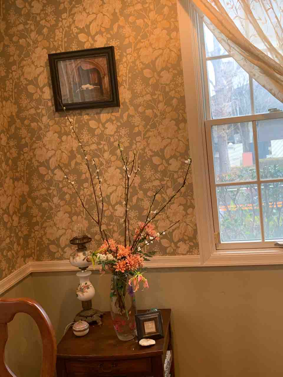 器は、ローラ・アシュレイのスロバキア製ガラス花器にあわせました。